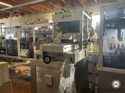 Se vende línea de embotellado Bertolaso tiene una etiquetadora Krones del año 2000 con cierre de botella a la entrada. Tiene 8 placas con un paso de máquina de unos 30 cm. Tiene ajuste manual del cabezal y de la película de cola, sistema de centrado mecánico y alisado de la etiqueta de salida.