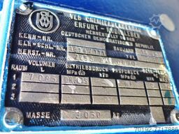 Equipamiento Boca de hombre / cúpula en la base superior Tipo chapa Salida disponible Observaciones Recipiente de acero dulce, chapado interiormente con V2A (1.4541); diámetro de la boca de hombre 520 mm; revestimiento protector en el exterior del recipiente; más pesado en el interior del recipiente último uso previsto Industria de la pintura